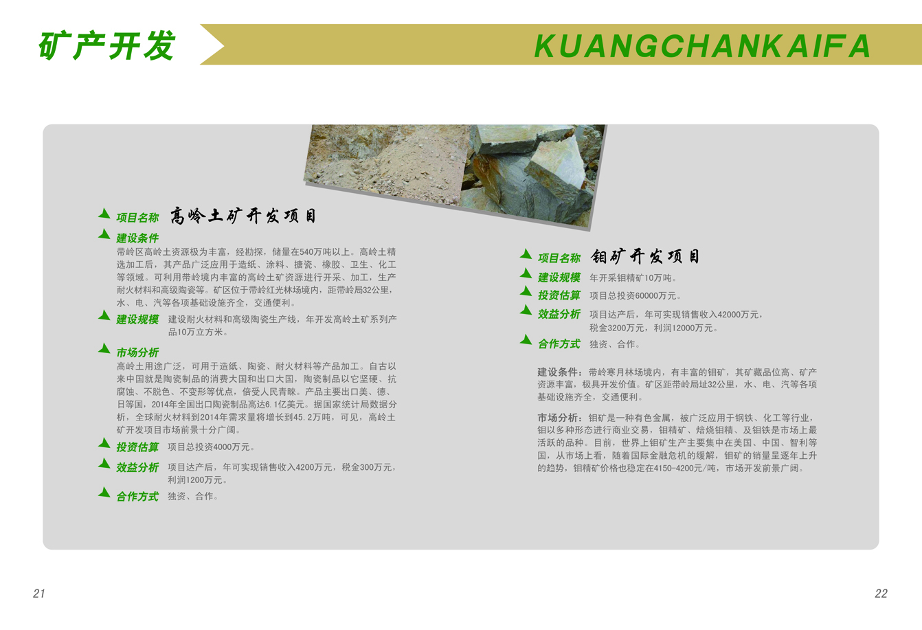 高岭土矿开发项目 钼矿开发项目